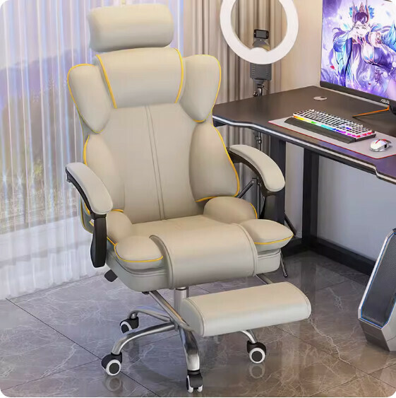 熱推辦公座靠背椅【豪華款-灰色黃邊+頭枕+腳踏(海綿坐墊)】【鋼製腳】