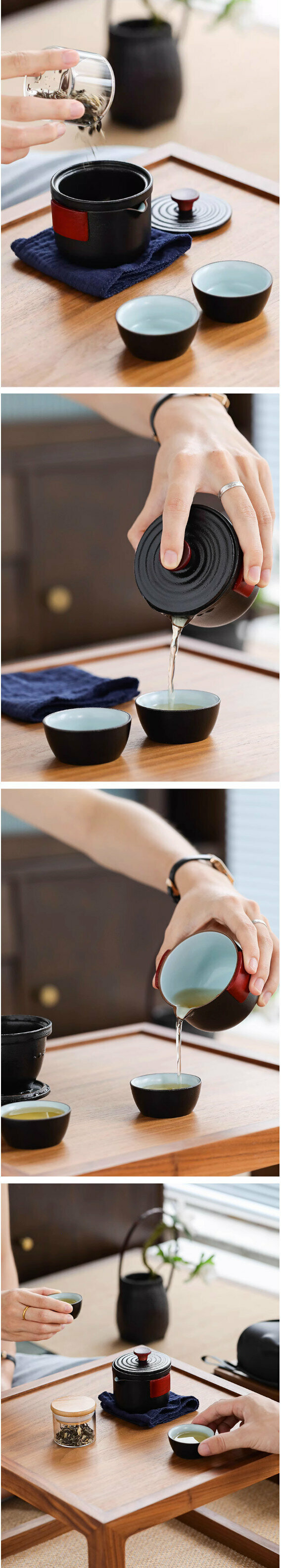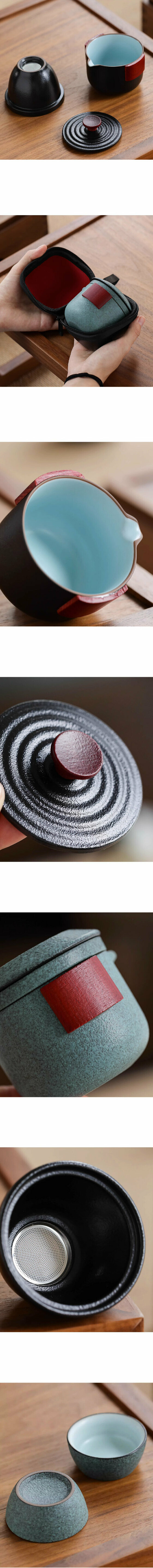 熱推戶外便攜式茶具套裝【青陶《小善行雙木》一壺二杯旅行茶具】