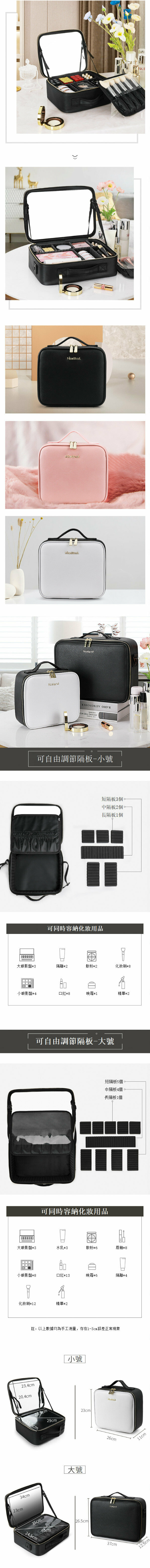 熱推便攜手提化妝品收納包【大號 純黑色(全屏鏡子)PU皮金屬拉鏈】