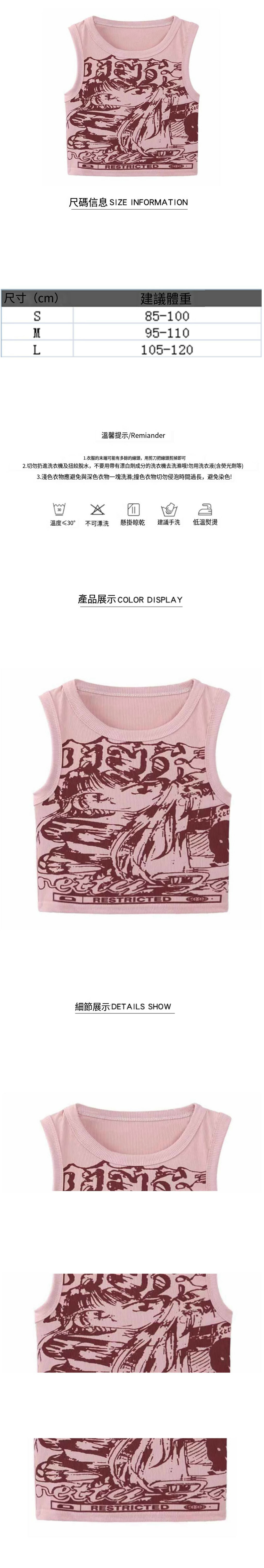 熱推印花工字小背心(粉色)(S/M/L碼,下單後請與客服聯繫發貨尺碼)