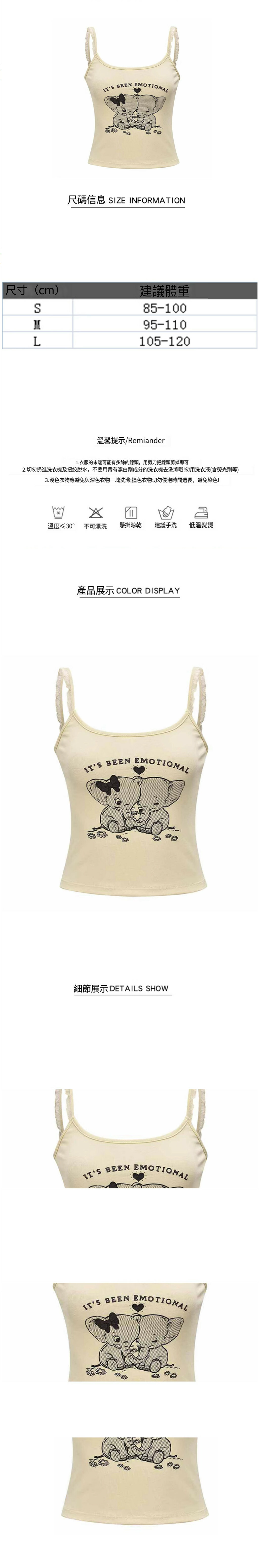 熱推印花吊帶女(奶黃色)(S/M/L碼,下單後請與客服聯繫發貨尺碼)