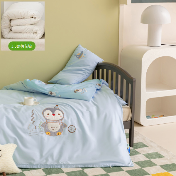熱推純棉兒童被套+墊套+枕套(藍色運動企鵝【B類/抗菌/防蟎/0甲醛】)(3.3磅棉花芯六件套)