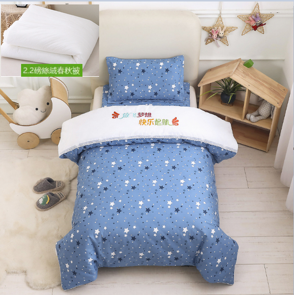 熱推純棉兒童被套+墊套+枕套(藍色星空)(2.2磅羽絲絨六件套)