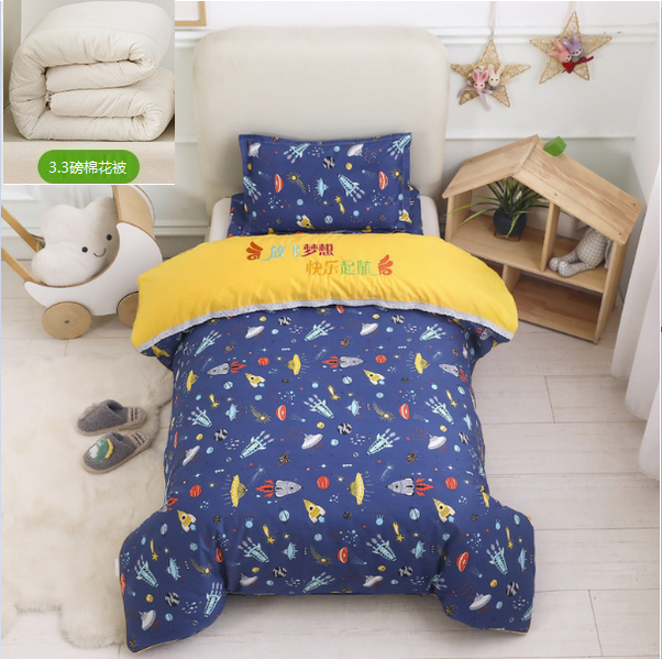 熱推純棉兒童被套+墊套+枕套(宇宙小飛船)(3.3磅棉花款六件套【包布】)