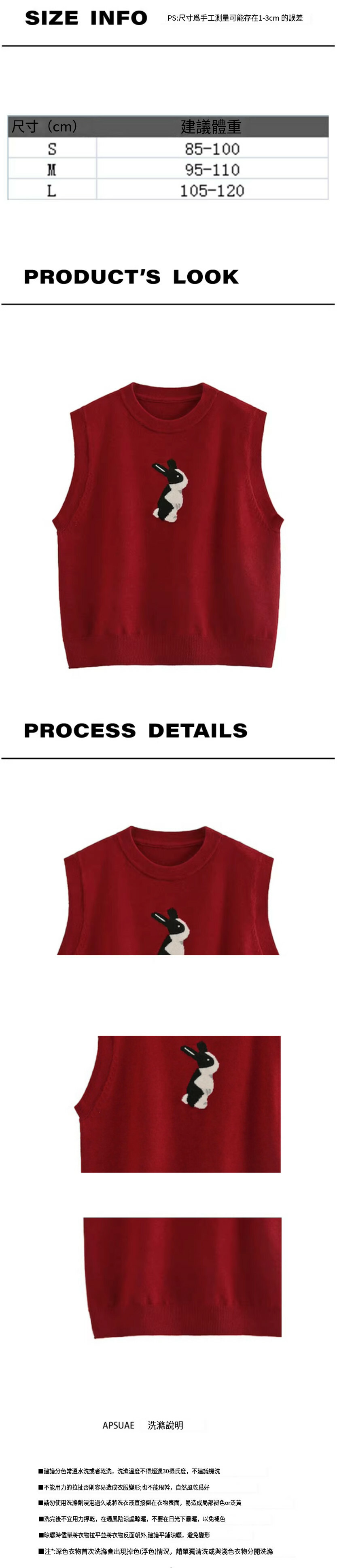 熱推小兔提花針織馬甲(紅色)(S/M/L碼,下單後請與客服聯繫發貨尺碼)