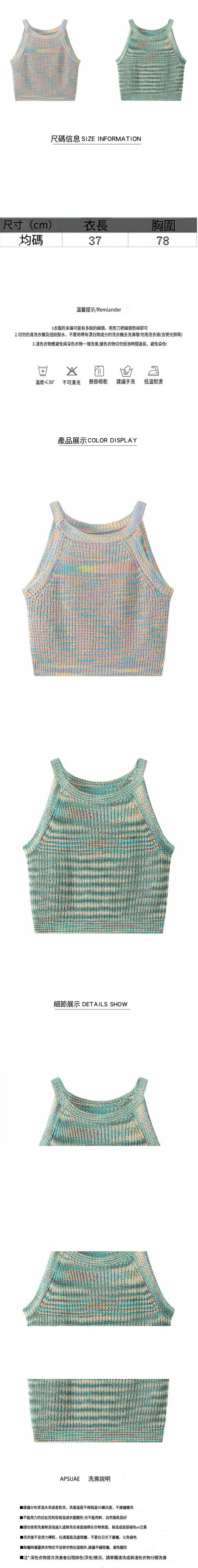 熱推彩虹掛脖針織小吊帶(綠色)(均碼,下單後請與客服聯繫發貨尺碼)