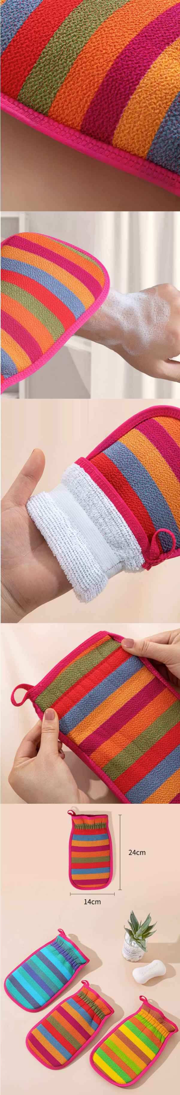 熱推彩虹條紋加厚韓式搓澡巾【紅色】