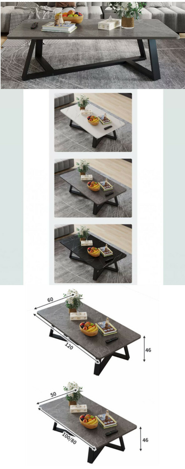 熱推長方形簡易茶幾(大理石紋-白色)【尺寸:長120*寬50*高46cm】