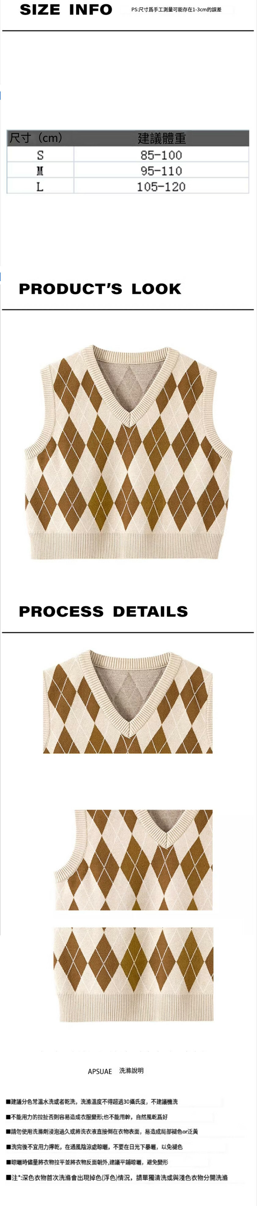 熱推復古菱形針織馬甲(卡其色)(S/M/L碼,下單後請與客服聯繫發貨尺碼)