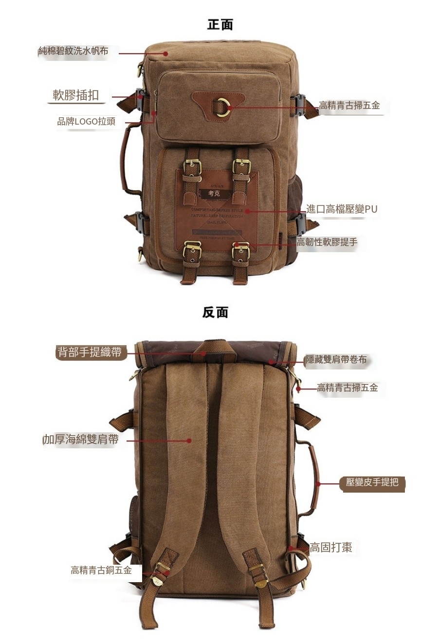 熱推復古男款戶外運動帆布雙肩包 手拎包【軍綠色】