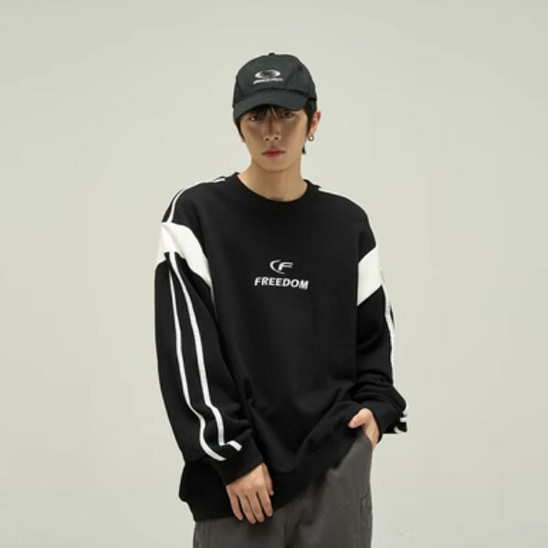 熱推復古圆領寬鬆衛衣【黑色S-XL碼,下單後與客服確認發貨尺碼】