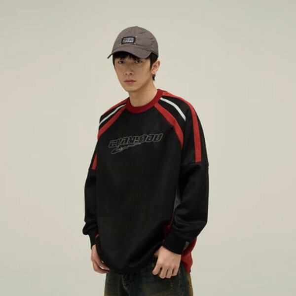 熱推復古運動拼接圓領衛衣【黑色S-XL碼,下單後與客服確認發貨尺碼】
