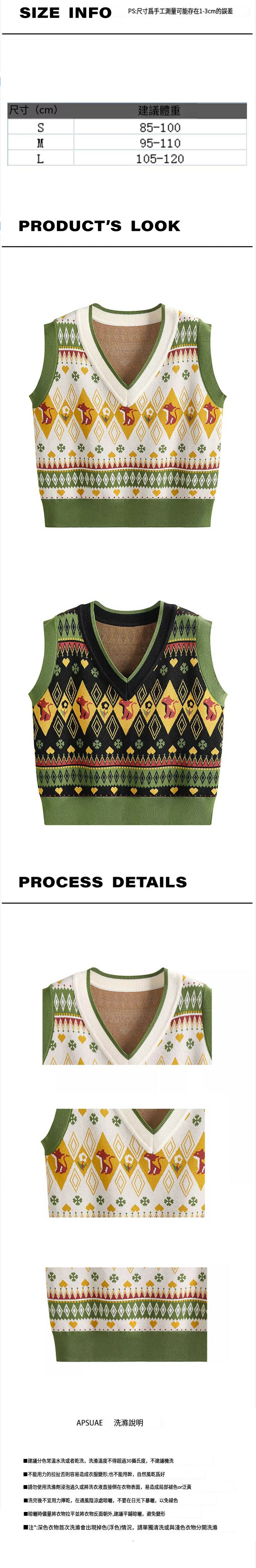 熱推菱格卡通提花針織馬甲(綠黑色)(S/M/L碼,下單後請與客服聯繫發貨尺碼)
