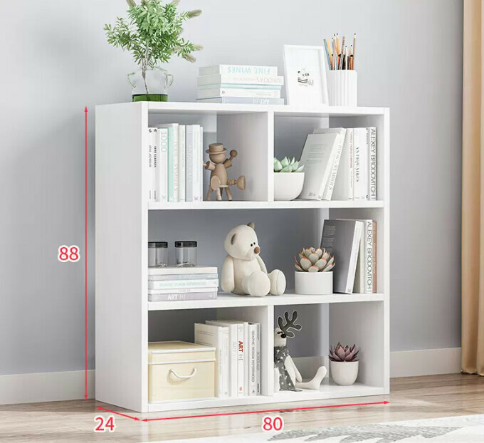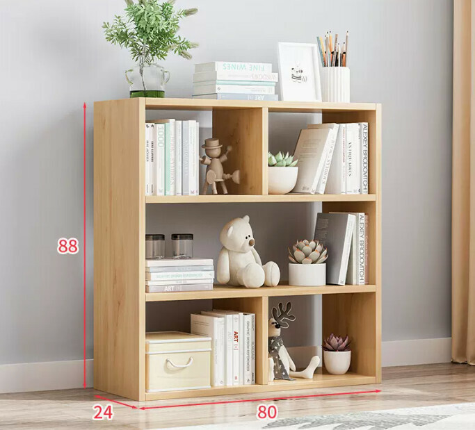 熱推簡易書架落地客廳置物架(三層藍松色80*24*88cm)