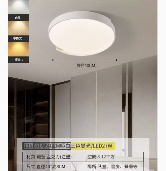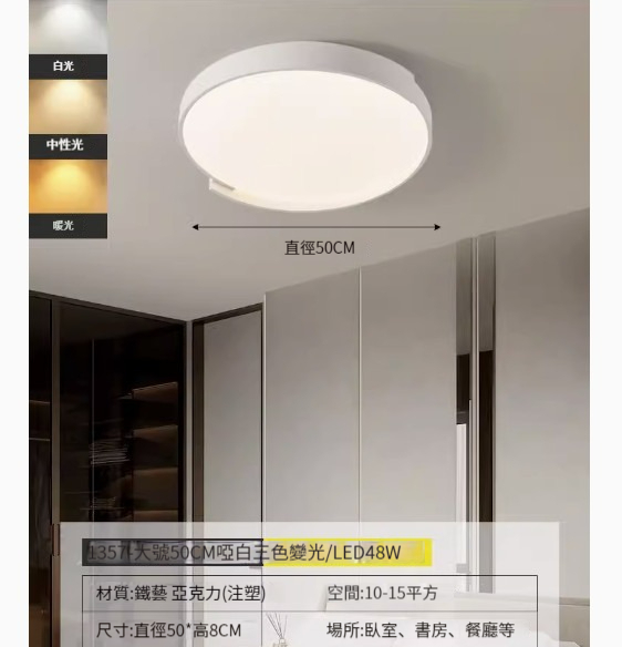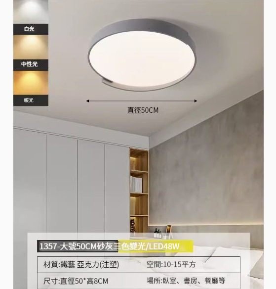 熱推簡約吸頂燈【1357-啞白50cm-三色變光】