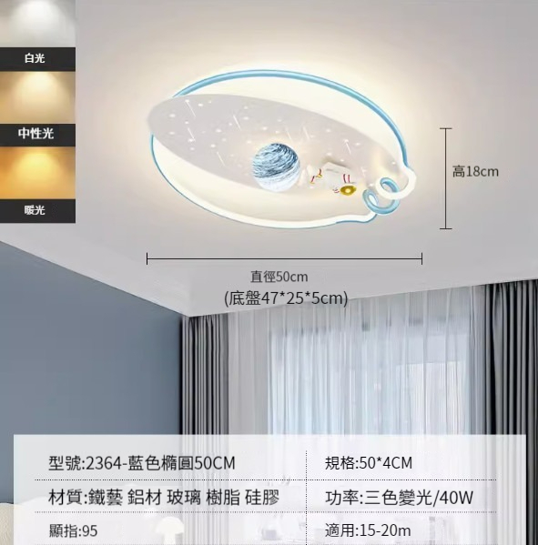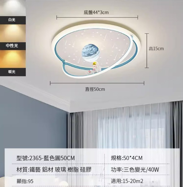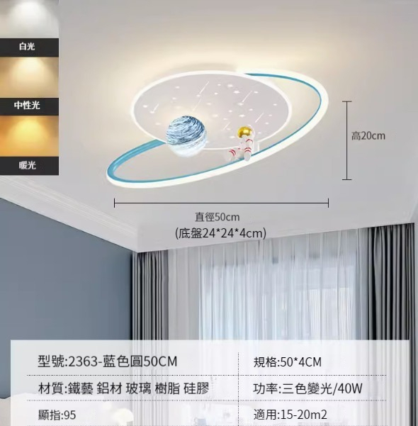 熱推簡約吸頂燈【2364-藍色圓50cm-三色變光40W】