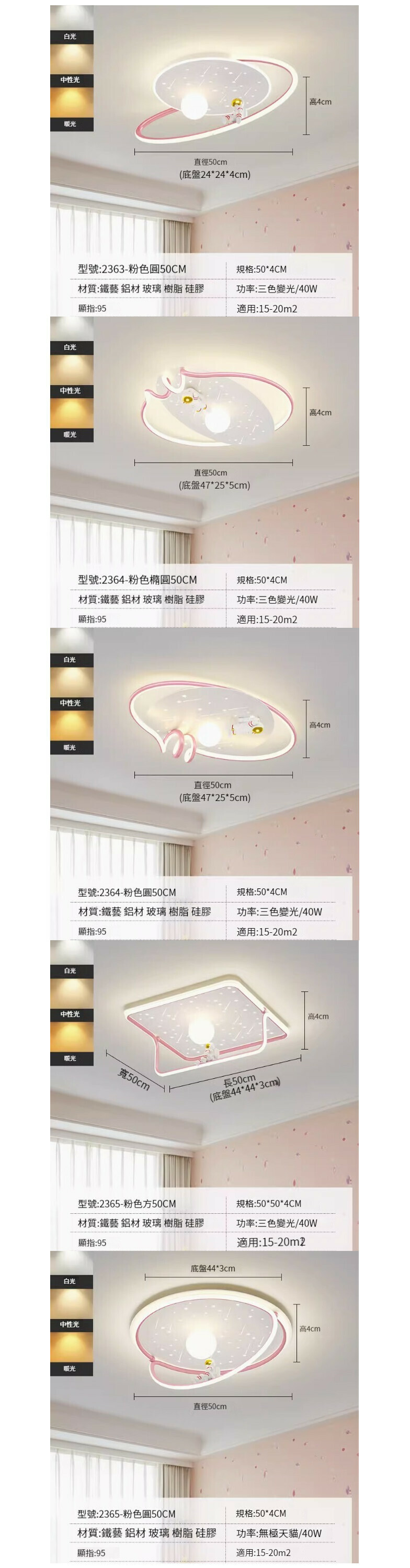 熱推簡約吸頂燈【2364-粉色橢圓50cm-三色變光40W】