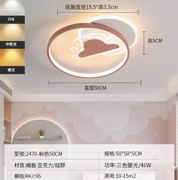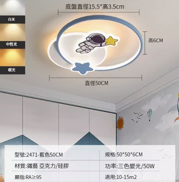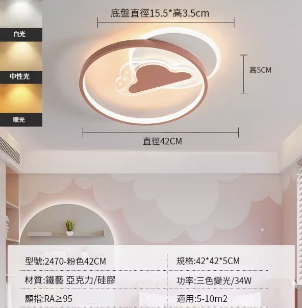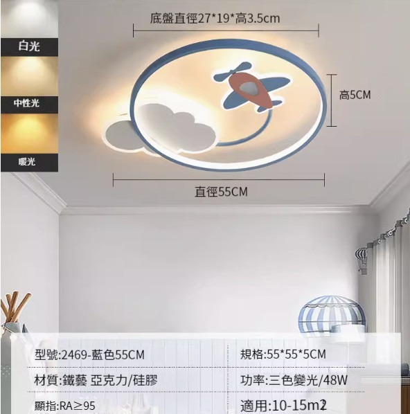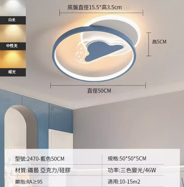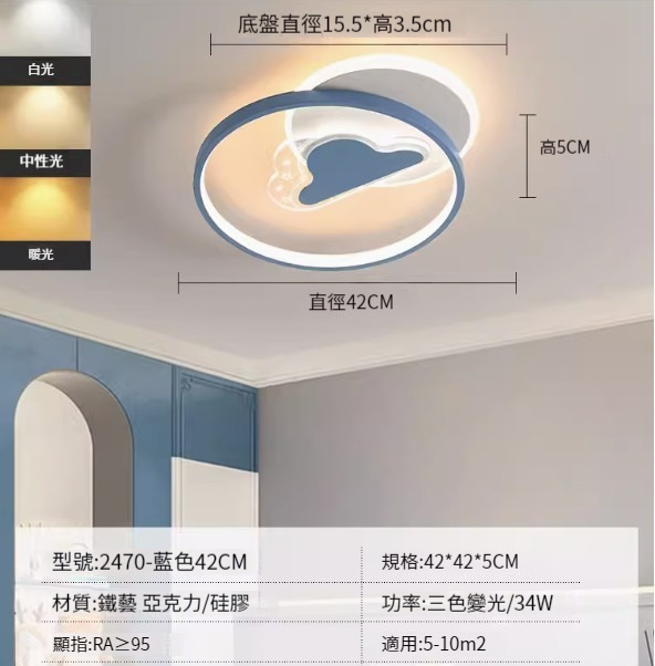 熱推簡約吸頂燈【2470-藍色42cm-三色變光34W】