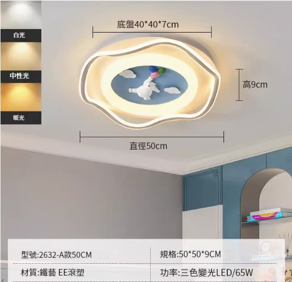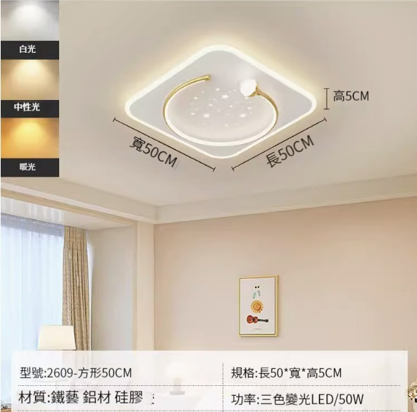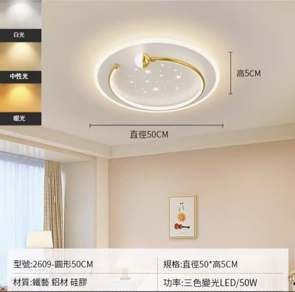 熱推簡約吸頂燈【C款50cm-三色變光65W】