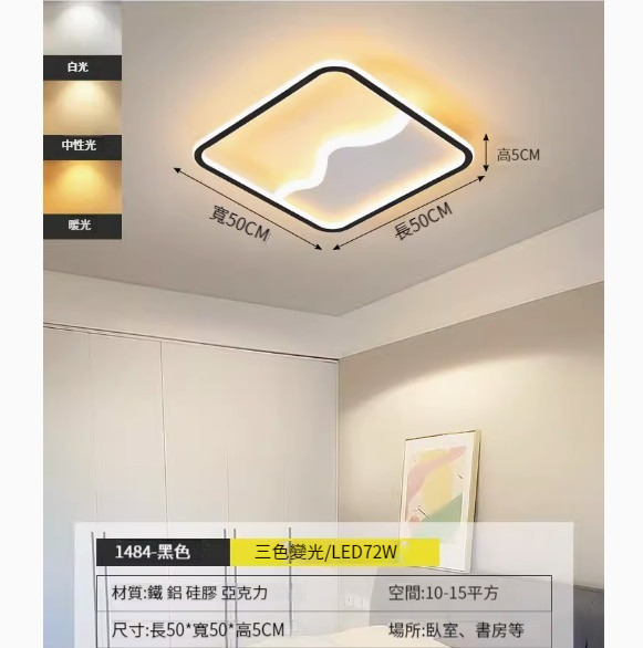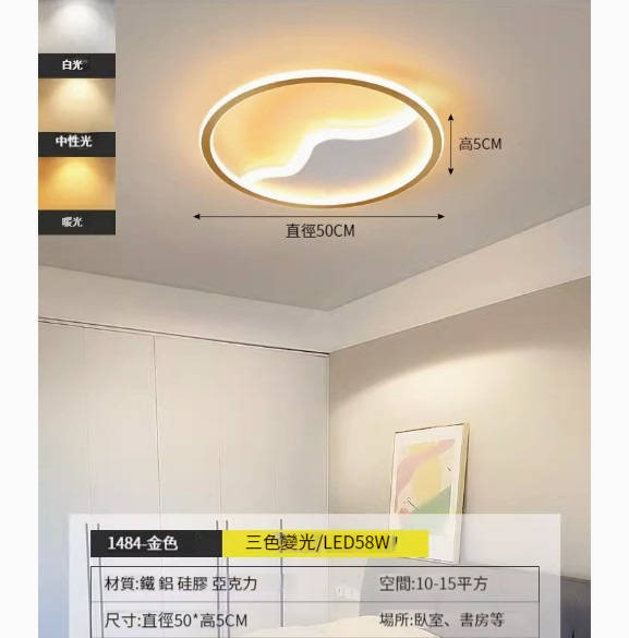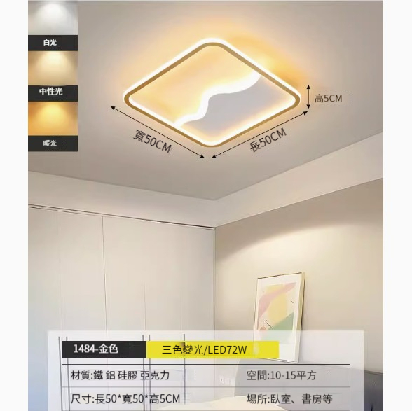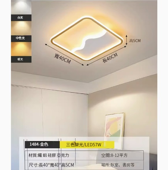 熱推簡約吸頂燈【金色方形-40cm-三色變光】