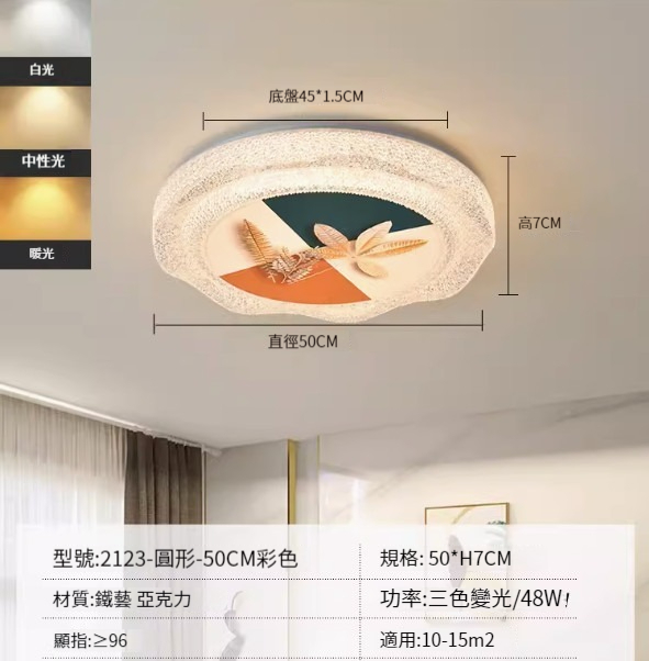 熱推簡約吸頂燈【荷花款-50cm-48W三色變光】