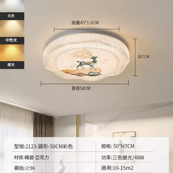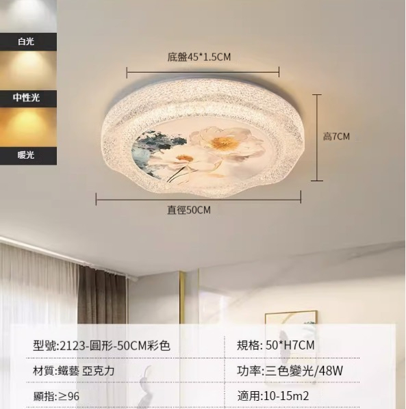 熱推簡約吸頂燈【楓葉款-50cm-48W三色變光】