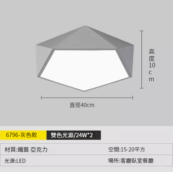 熱推簡約吸頂燈【五角-灰色大號led 50cm】