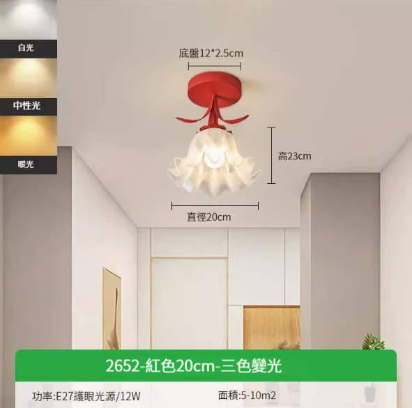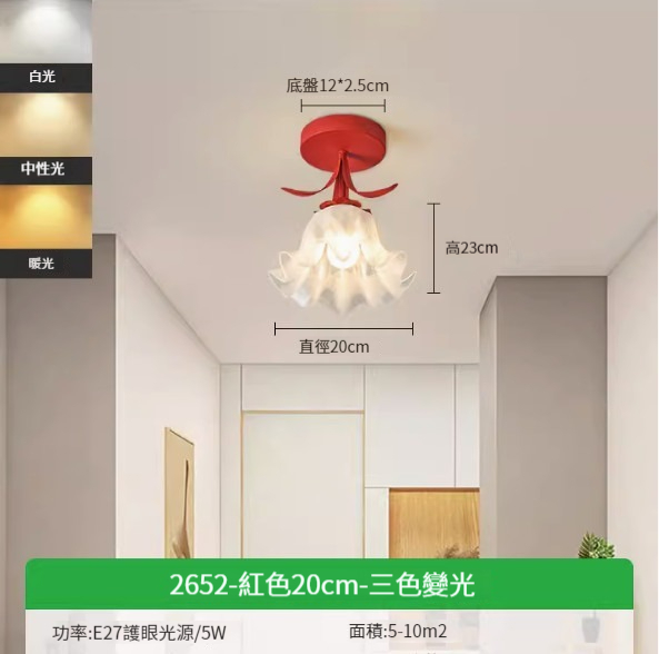熱推簡約吸頂燈【紅色20cm-三色變光5W】
