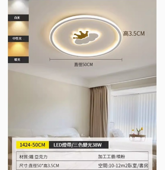 熱推簡約吸頂燈【白色50CM-三色變光38W】