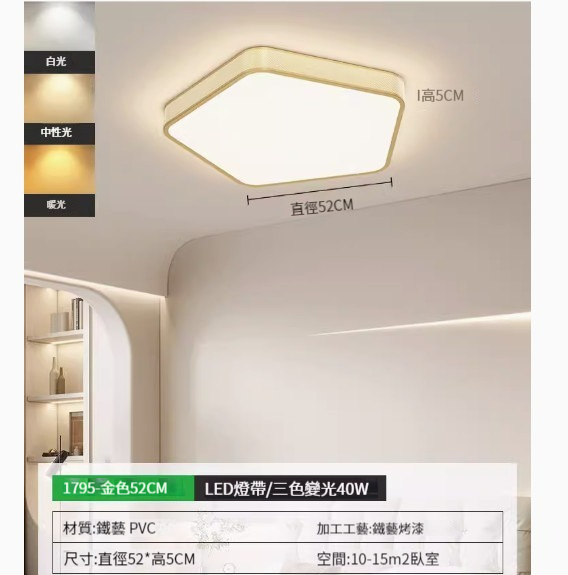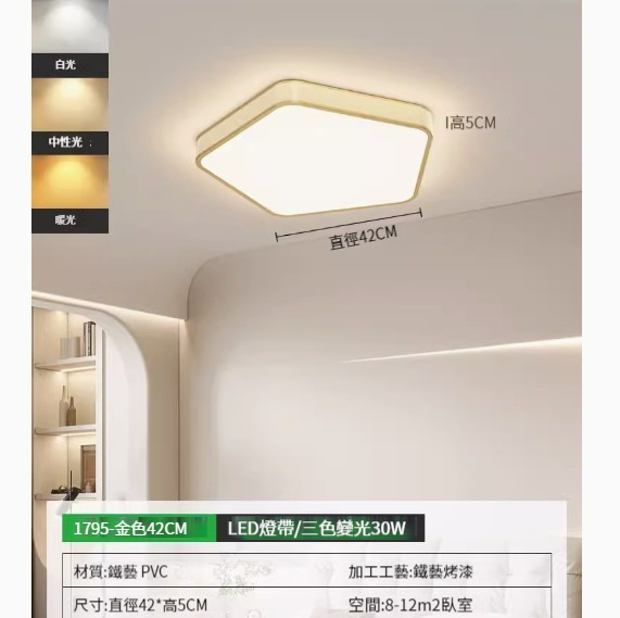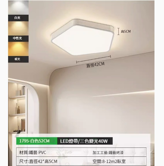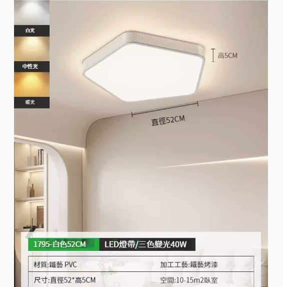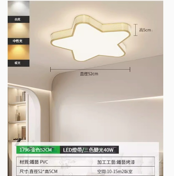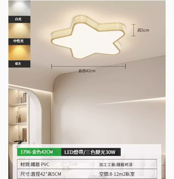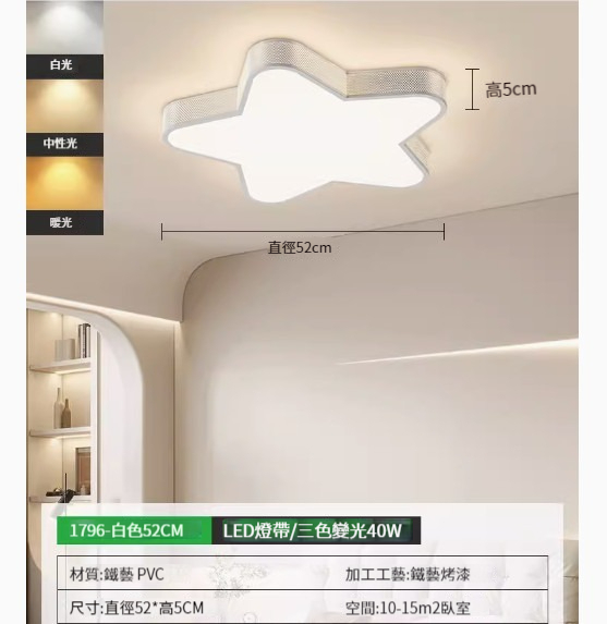 熱推簡約吸頂燈【白色五角星42cm-三色變光30W】