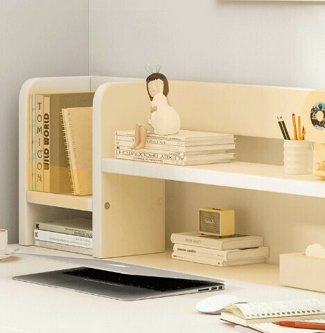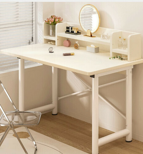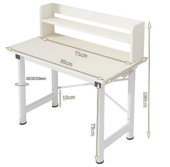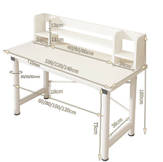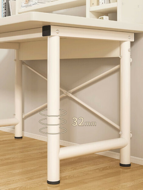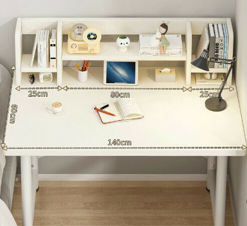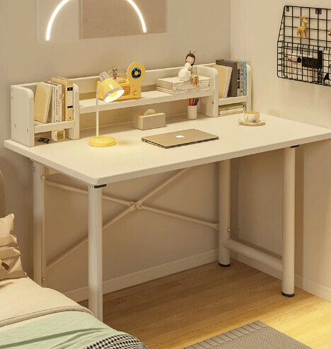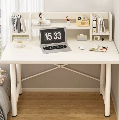 熱推簡易電腦桌(【30mm圓管】暖白+白架+書架)【尺寸:140*60cm】