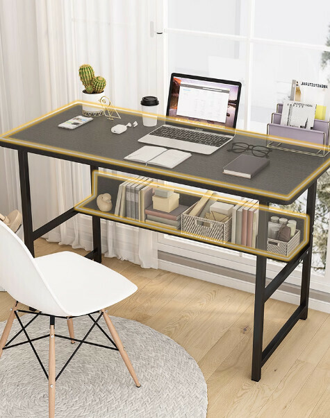 熱推簡易電腦桌(【加寬加固雙層款】古檀木紋+黑架)【尺寸:80*40cm】