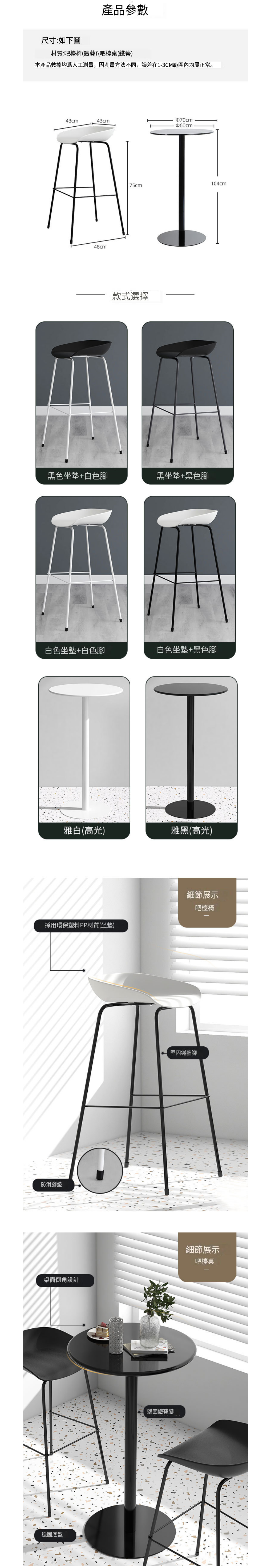 熱推簡約鐵藝高腳椅(全黑)(尺寸:75*48*43*43CM)