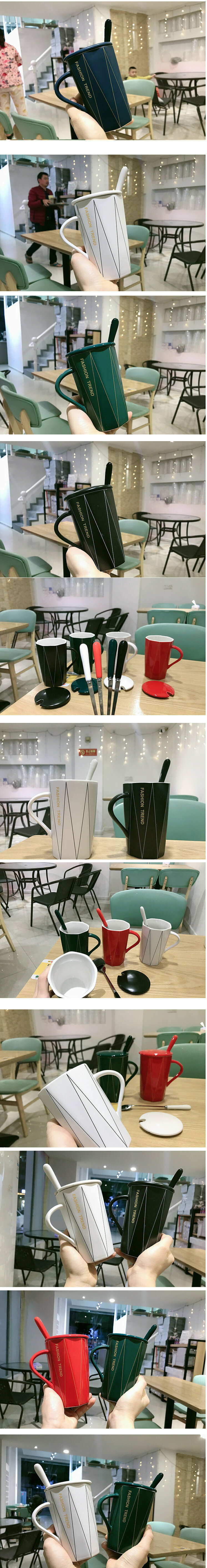 熱推簡約個性陶瓷杯 黑色【帶蓋+勺】