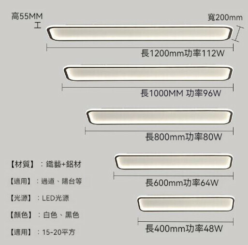 熱推簡約長方形過道走廊吸頂燈(黑色-120*20cm)【白光】