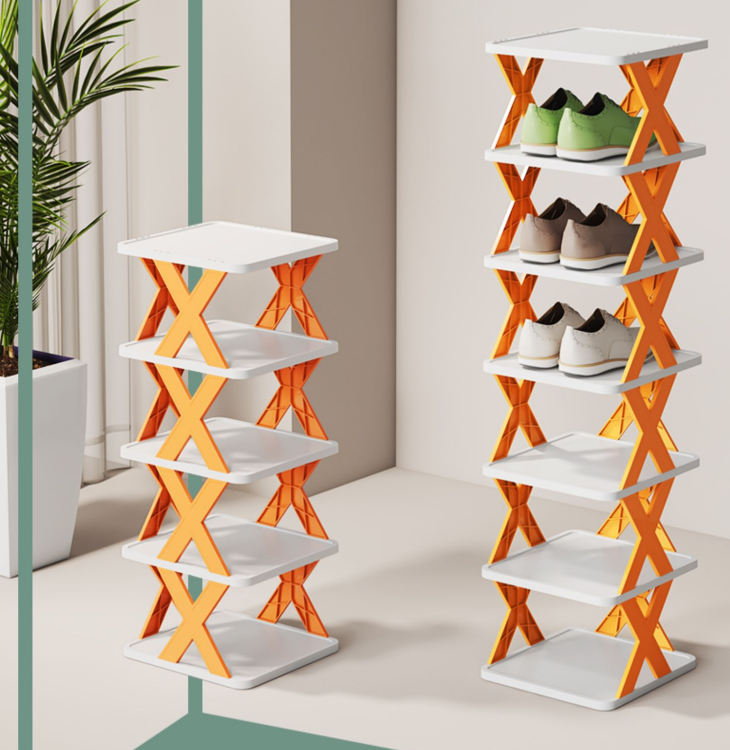 熱推簡易拼接多層鞋架(北歐藍 4層)(尺寸:26*24*50.5CM)