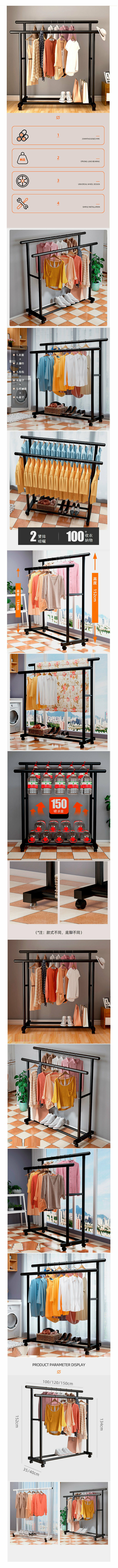 熱推簡易收納晾衣架【優雅白1米特粗雙桿+輪子(25mm管粗】