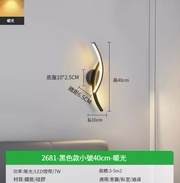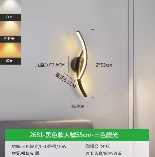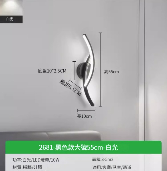 熱推簡約壁燈【2681-黑色款大號55cm-暖光10w】