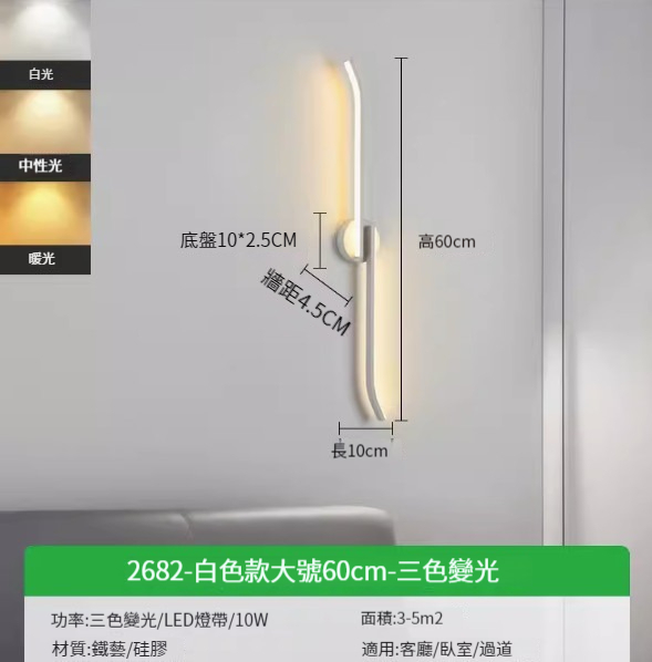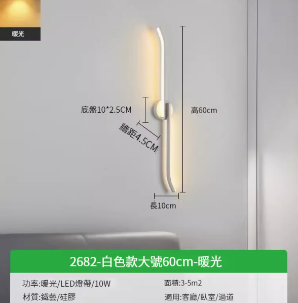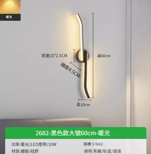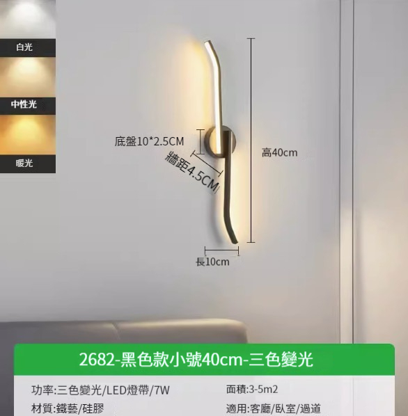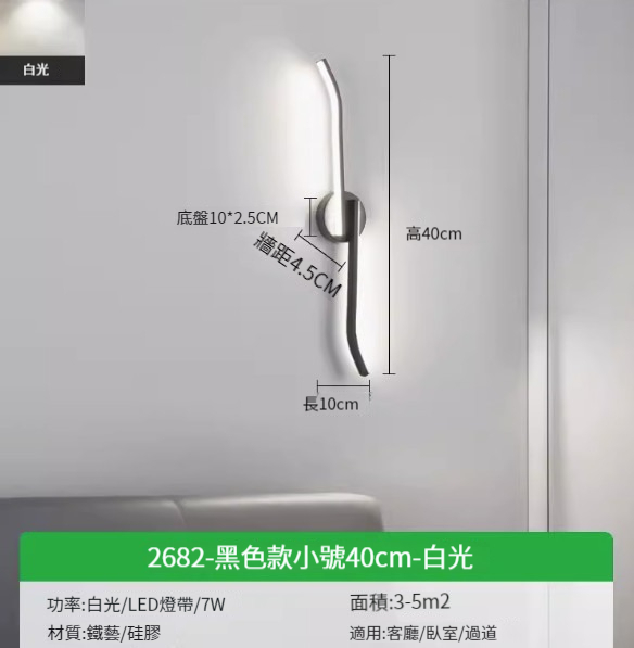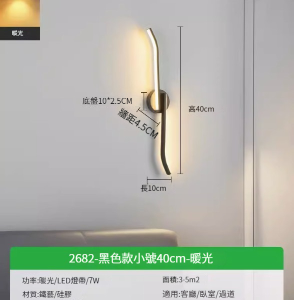 熱推簡約壁燈【2682-黑色款小號40cm-暖光7w】
