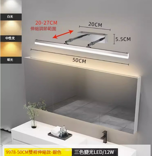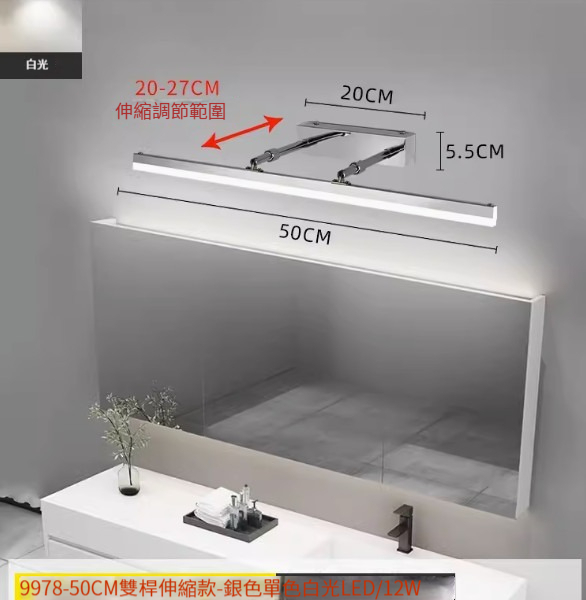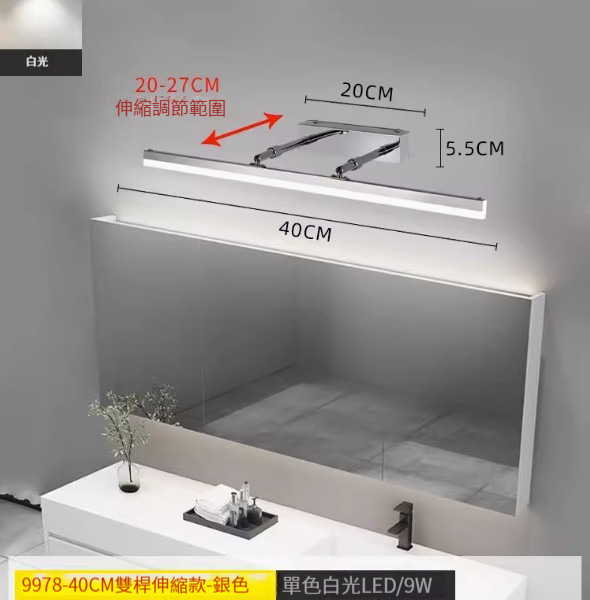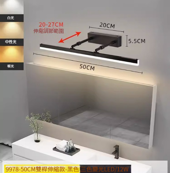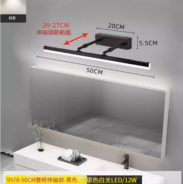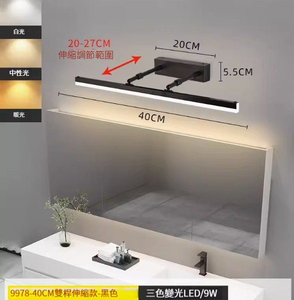 熱推簡約壁燈【雙杆伸縮款40cm-黑色-白光】