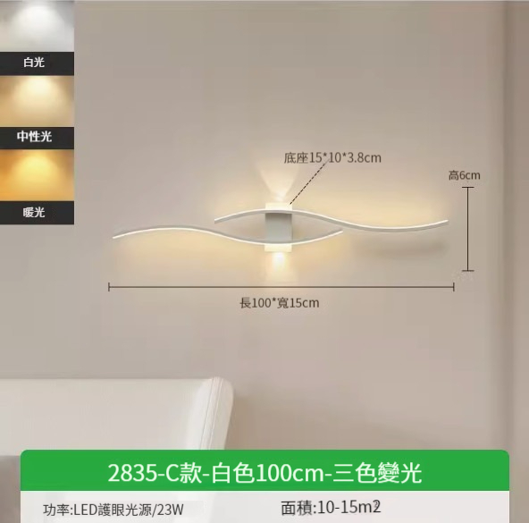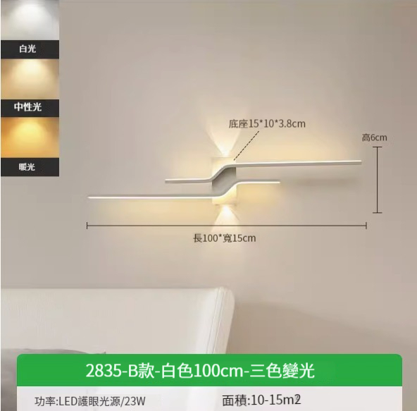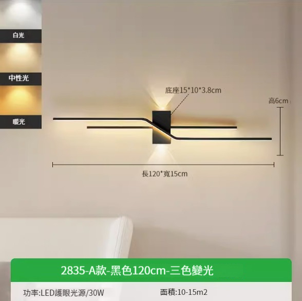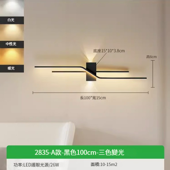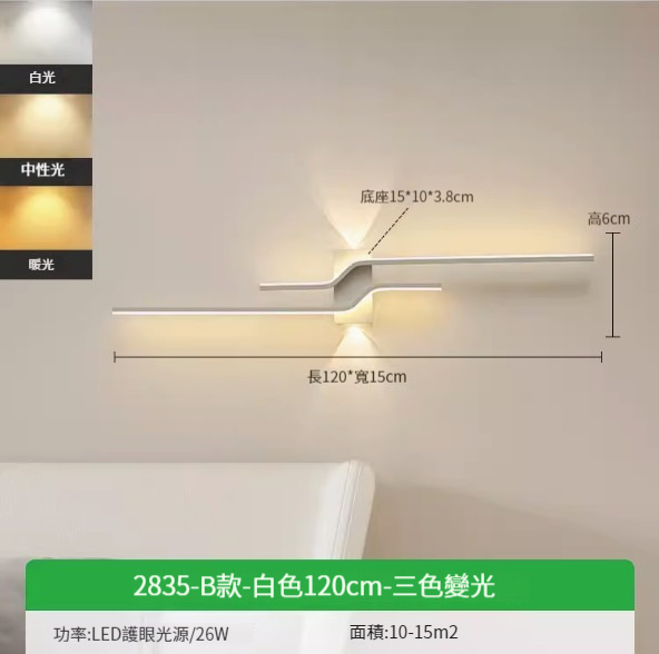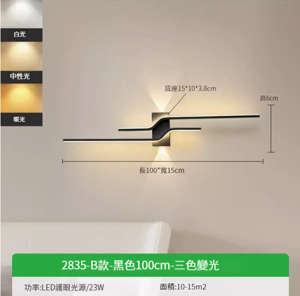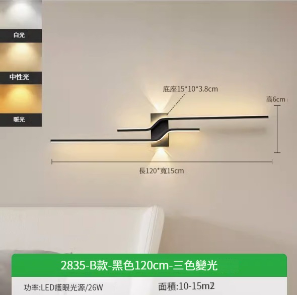 熱推簡約壁燈【B款-黑色120cm-三色變光26W】