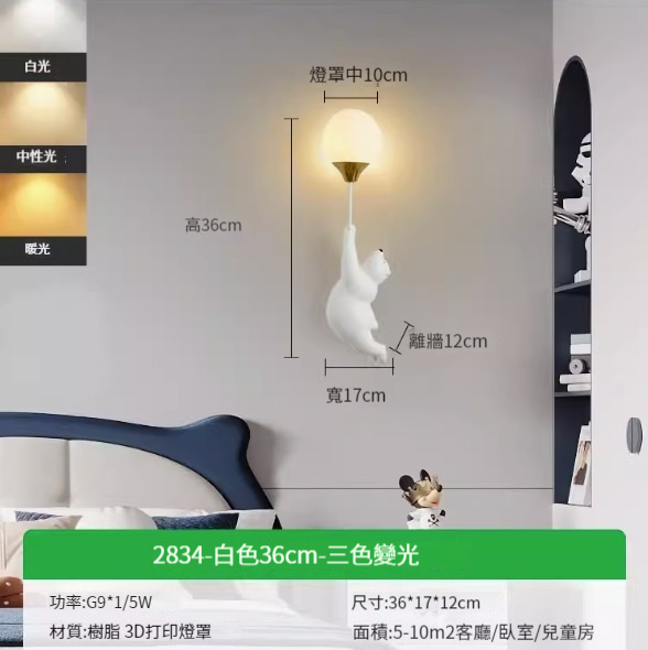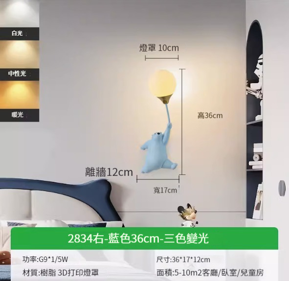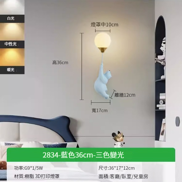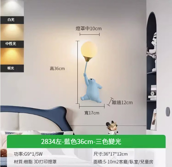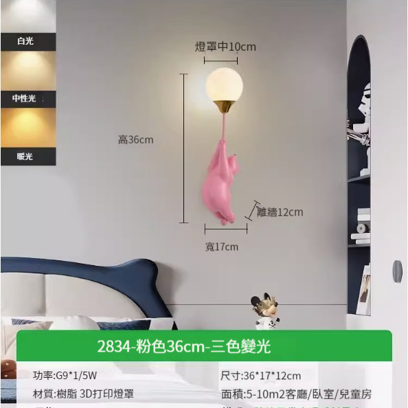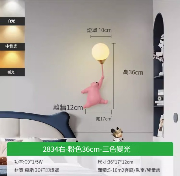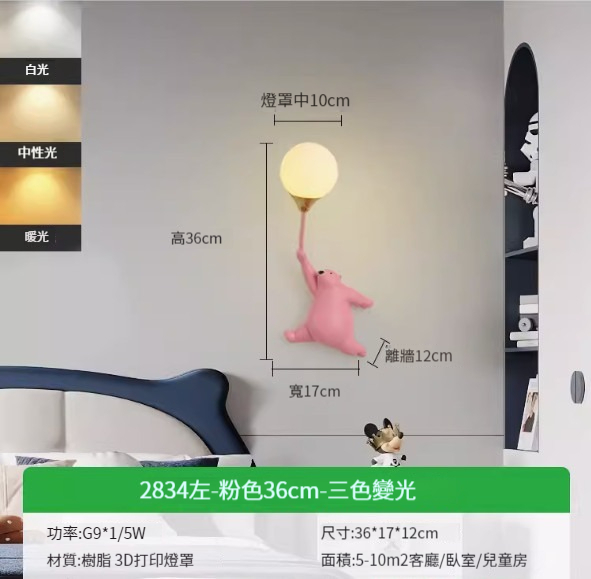 熱推簡約壁燈【粉色B款-36cm-三色變光5W】