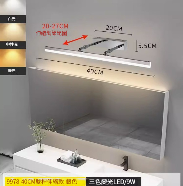 熱推簡約壁燈【單杆款40cm-銀色-白光】