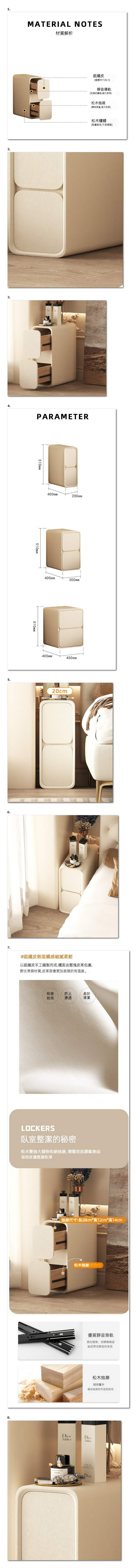 熱推小型超窄夾縫實木床頭櫃(奶杏色-20CM寬)