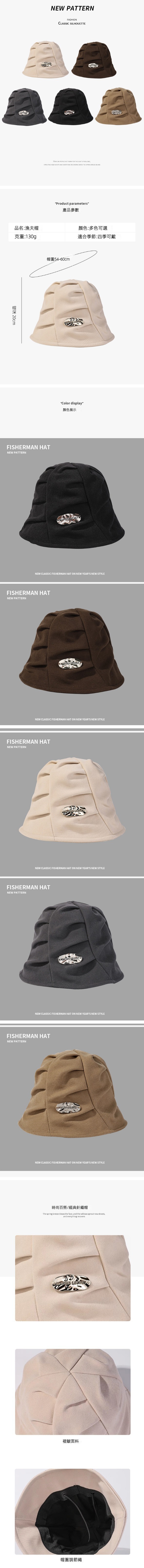 熱推純色褶皺金屬標漁夫帽(E-550黑色)