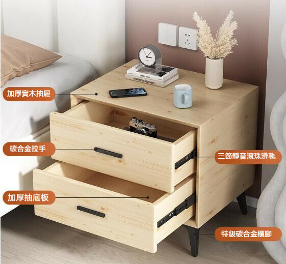 熱推實木床頭櫃(金-深灰色)(尺寸:長44x寬35x高47cm)