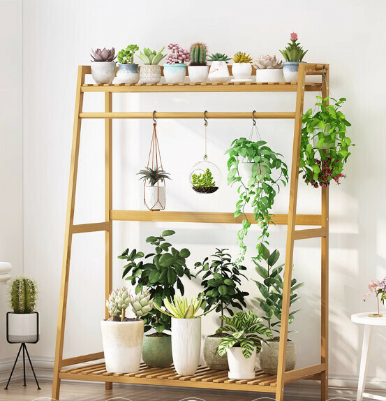 熱推實木花架(原色-100cm長)