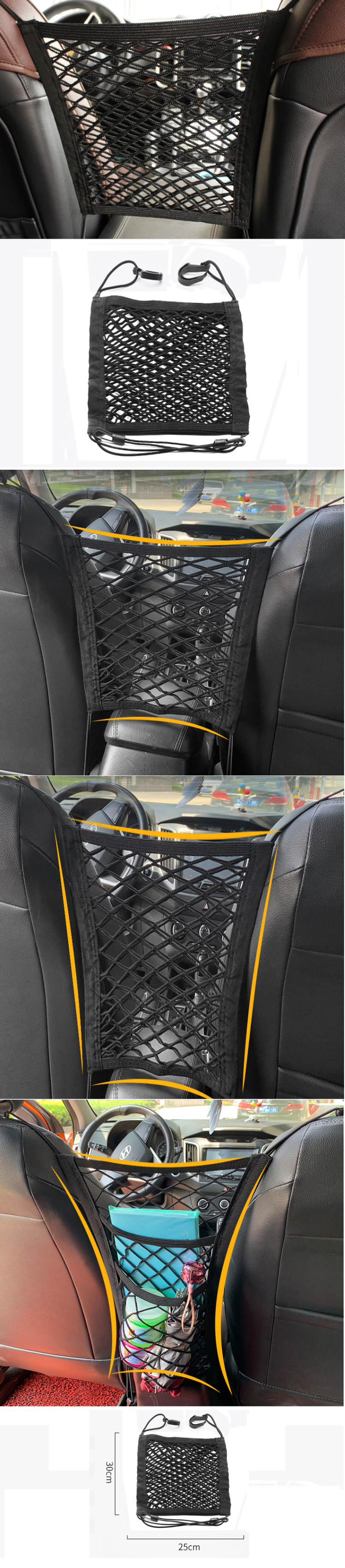 熱推汽車座椅間儲物網兜車載擋網(三層四邊彈力 28*30cm SUV款)【下單後請聯絡客服確認發貨款式】