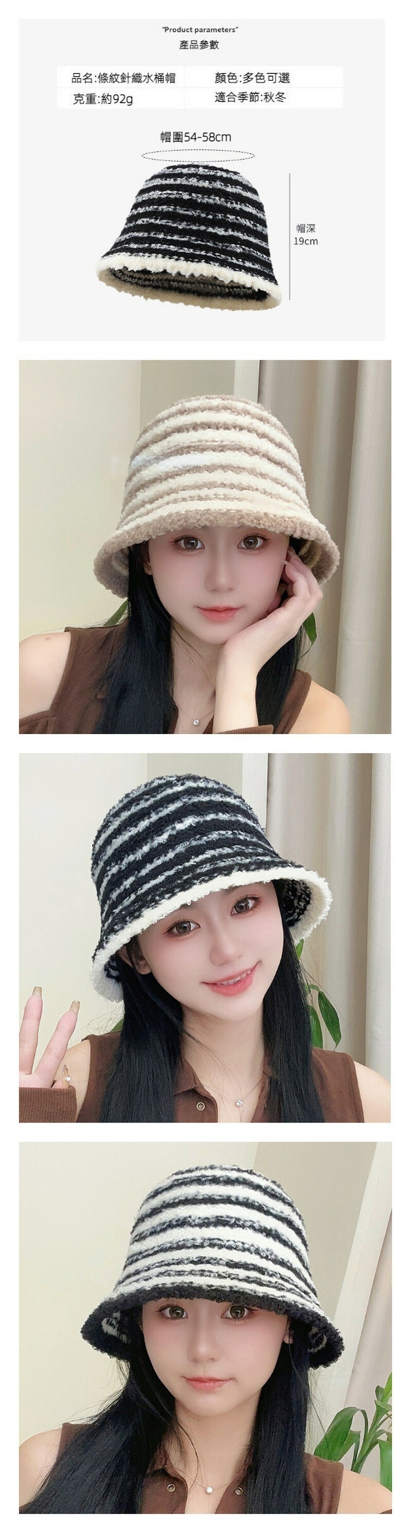 熱推條紋針織漁夫帽(E-537CHT白色)