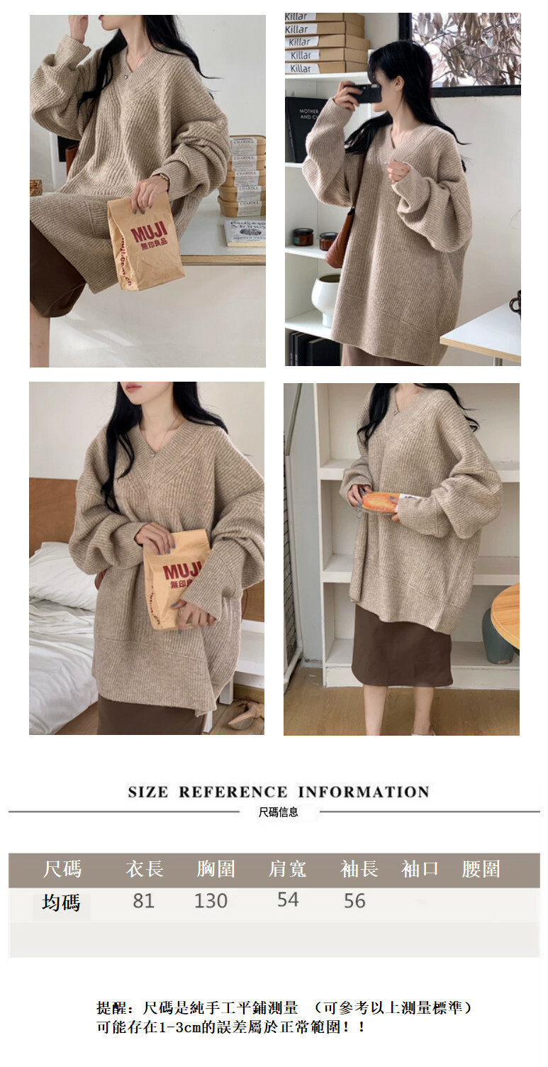 熱推毛衣服飾 寬松套頭韓版V領毛衣 百搭款 【卡其色】均碼